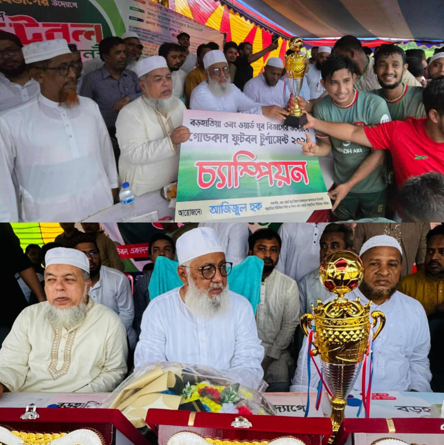 খেলা শেষ পুরস্কার বিতরণ করেন প্রধান অতিথি আলহাজ্ব শাহজাহান চৌধুরীরসহ অন্যান্য অতিথিবৃন্দরা ।