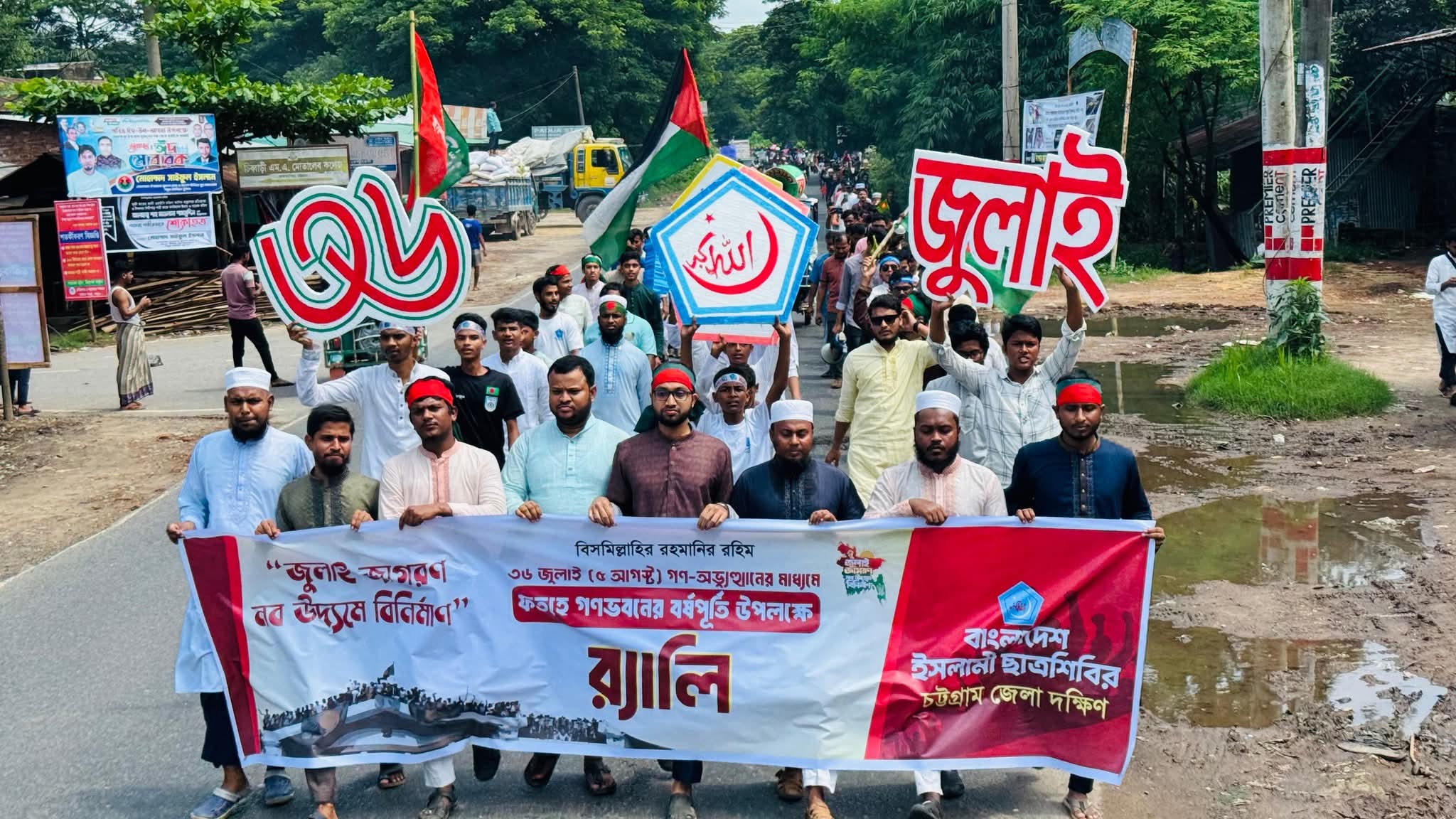 ৩৬ জুলাই (৫ আগস্ট) ফতহে গণভবনের বর্ষপূর্তি উপলক্ষে ছাত্রশিবির চট্টগ্রাম জেলা দক্ষিণের বর্ণাঢ্য র্যালি “জুলাই জাগরণ নব উদ্যমে বিনির্মাণ" অনুষ্ঠিত।