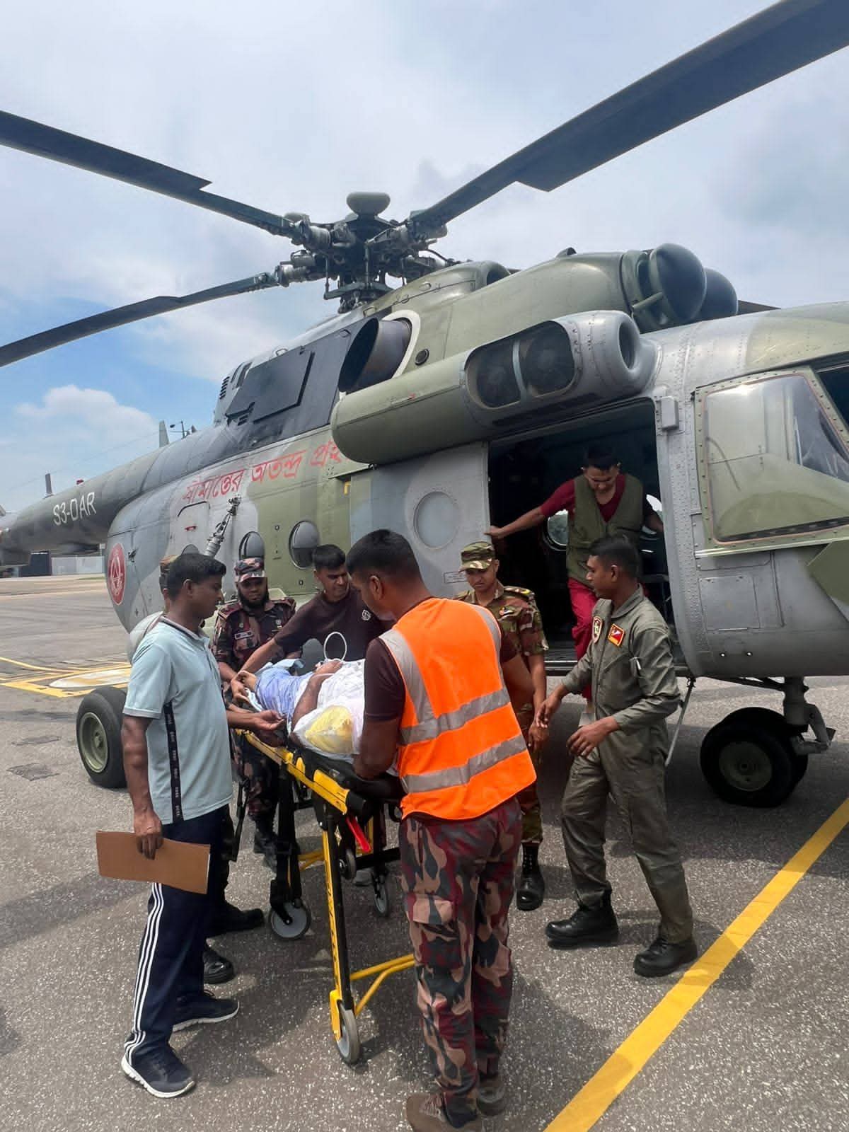 বিজিবির হেলিকপ্টারযোগে ঢাকায় আনা হলো মায়ানমার সীমান্তে অসুস্থ হাতিকে চিকিৎসা দিতে গিয়ে গুরুতর আহত ০২ চিকিৎসকসহ ০৩ জনকে