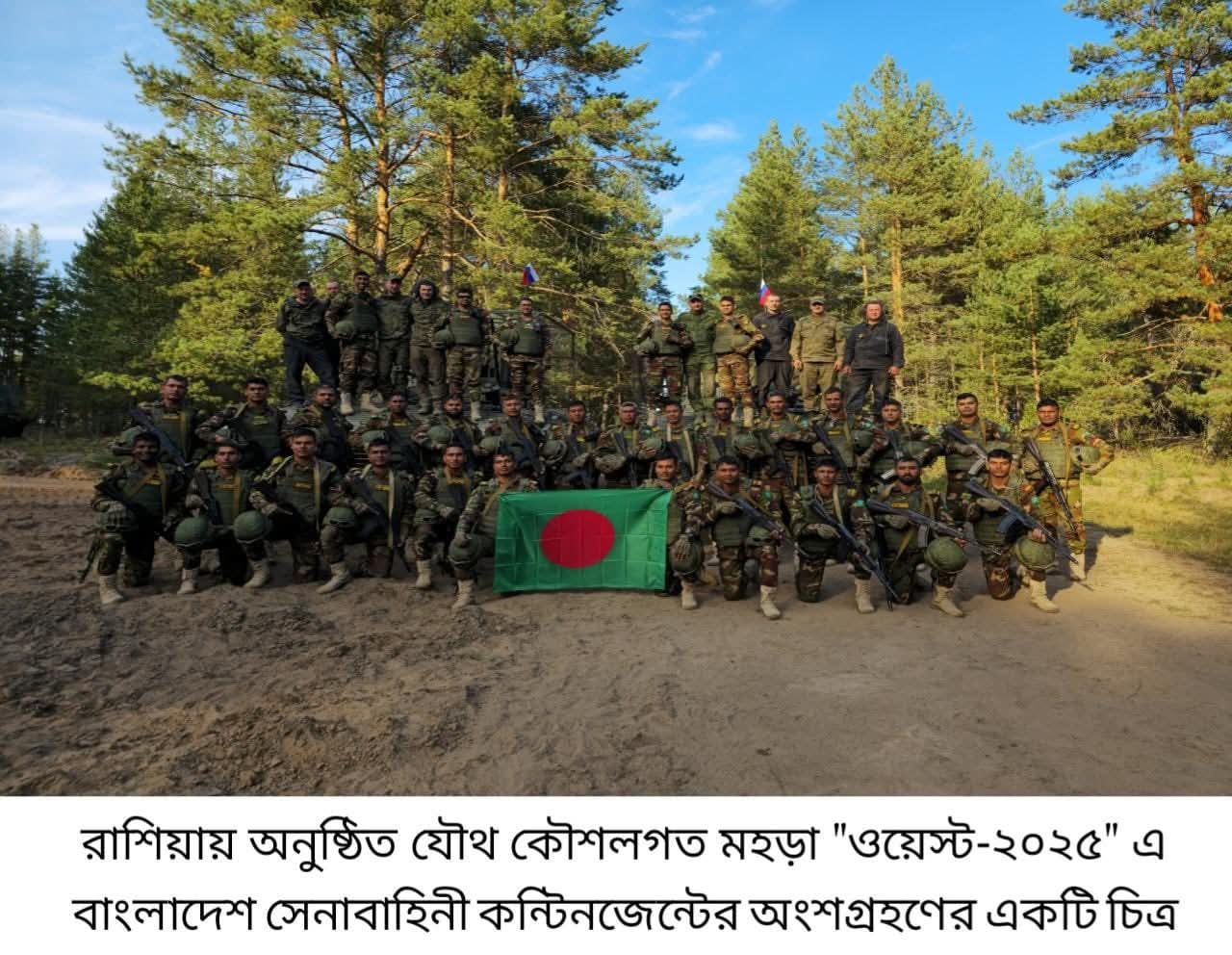রাশিয়ায় বাংলাদেশ সেনাবাহিনী কন্টিনজেন্ট এর অংশগ্রহণে যৌথ মহড়া "ওয়েস্ট-২০২৫" অনুষ্ঠিত