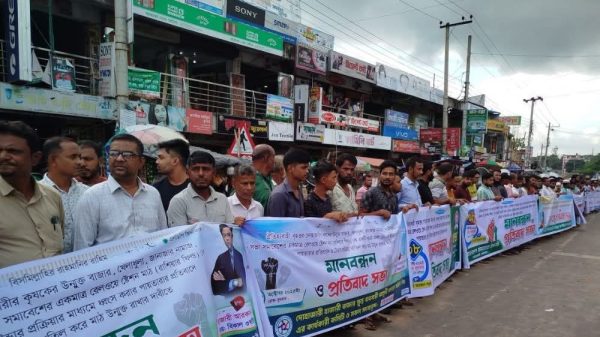 চন্দনাইশে দোহাজারী রেলওয়ে মাঠ ইজারার প্রতিবাদে স্থানীয়দের মানববন্ধন