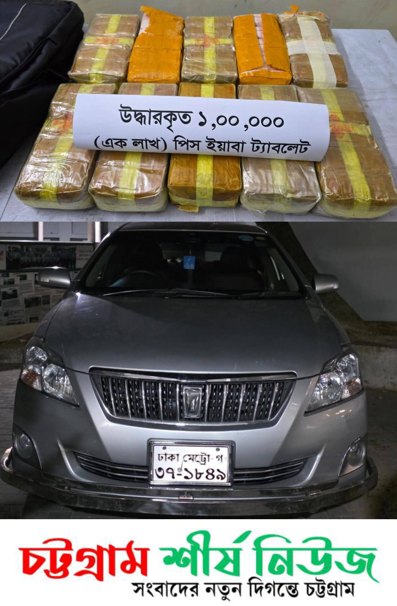চট্টগ্রাম কোতোয়ালি থানা পুলিশের অভিযানে এক লক্ষ পিস ইয়াবা টেবলেট ও একটি প্রাইভেটকার ও মোবাইল উদ্ধার।