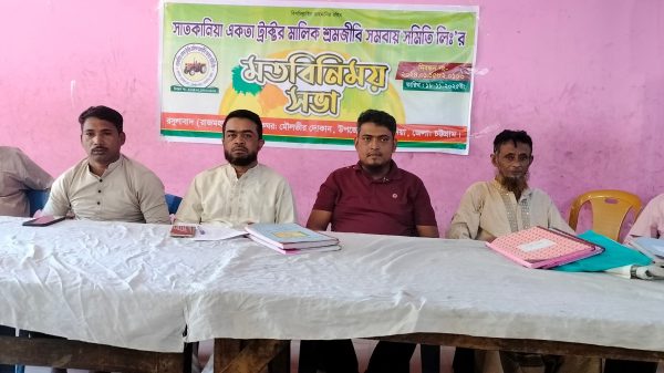 চট্টগ্রামের সাতকানিয়া উপজেলায় শ্রমজীবী মানুষের দ্বারা গঠিত সরকার অনুমোদিত সাতকানিয়া একতা ট্রাক্টর মালিক শ্রমজীবী সমবায় সমিতি লিমিটেড(নিবন্ধন নং-২০২৪.০১.১৫৮২-০১০৬) এর মতবিনিময় সভা অনুষ্ঠিত হয়েছে।